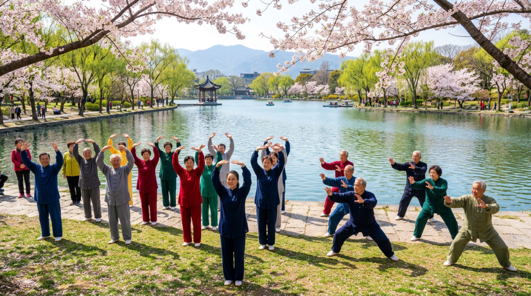 八段锦作为中国传统导引术的代表,距今已有千年历史,最早可追溯至马王堆汉墓的《导引图》。它以“调身、调息、调心”为核心,动作柔和缓慢,无需器械,随时随地都能练,堪称春季养生的“万能功法”。