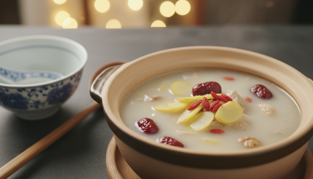 l食材:黄芪20g、乌鸡1只、红枣5枚、生姜3片;l做法:乌鸡切块焯水,与黄芪、红枣、生姜同炖1.5小时,加盐调味;